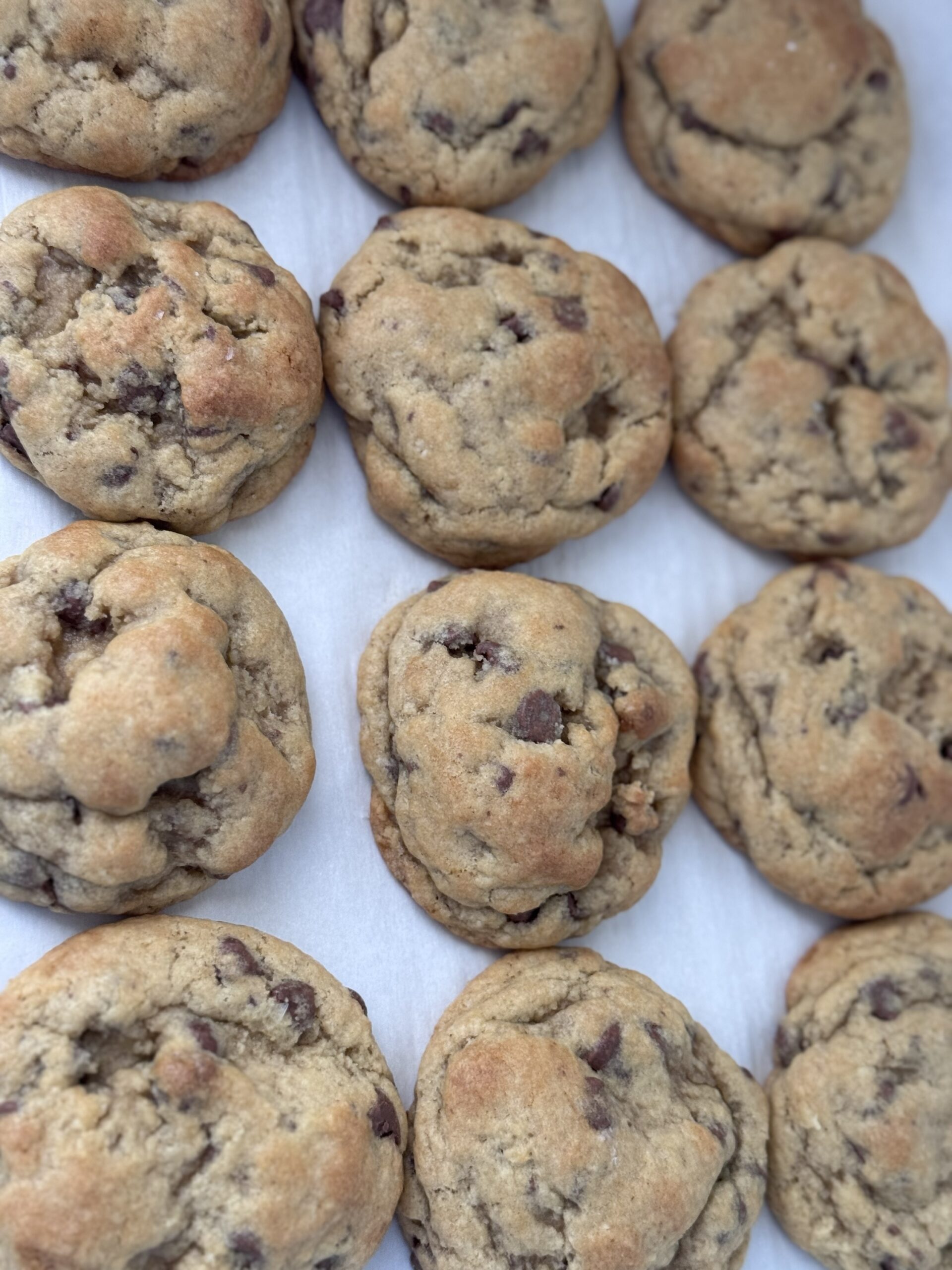The most delicious milk chocolate chip cookies that stay fresh for days thanks to the addition of sourdough. It’s so hard to have self control around these cookies!